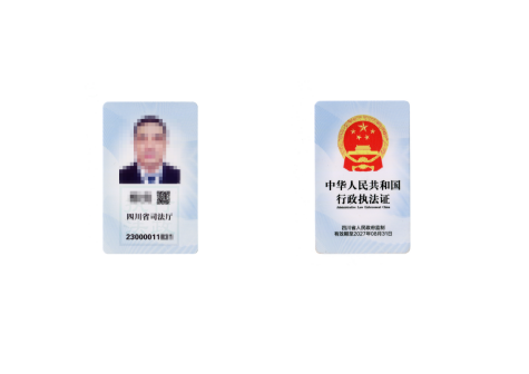 全国统一行政执法证样式:外套为黑色皮质插卡式,封皮印有“中华人民共和国国徽”图案、中华人民共和国行政执法证字样;内芯为PVC卡,内芯正面印有持证人员照片,并载明持证人员姓名、工作单位、证号,印有证件二维码、“行政执法”字样水印;背面印有“四川省人民政府监制、有效期”字样。全国统一行政执法证换发期间,原四川省行政执法证在2022年12月31日前可继续使用。